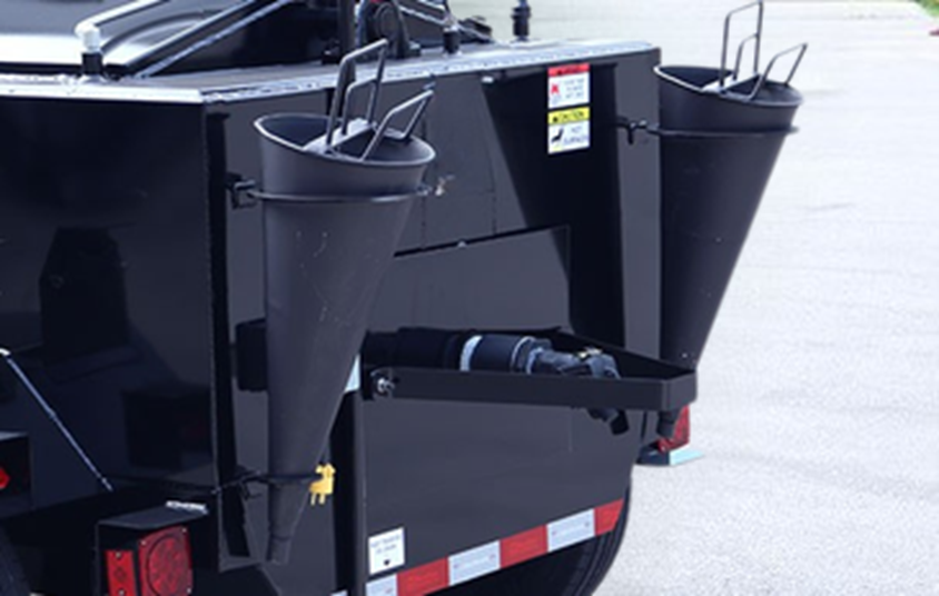 | 130 gal | 10-ga steel, fully welded | 6 hp Kubota diesel | Hydraulic | Gravity pour | Diesel (single source) | 5,200 lbs | (2) 225/75/R15 | Roofing, waterproofing |