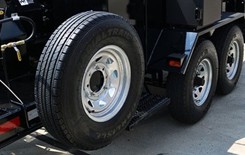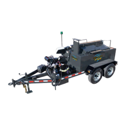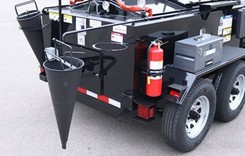 The largest direct fired kettle available holds a capacity for 100 gallons of rubberized ashphalt. This unit allows the contractor to increase the amount of material being melted without upgrading to a larger oil jacketed kettle. This unit comes with a single 3,500 lb axle with electric brakes and breakaway kit. Material is heated with a 300,000 BTU propane burner and comes with a single propane bottle holder.